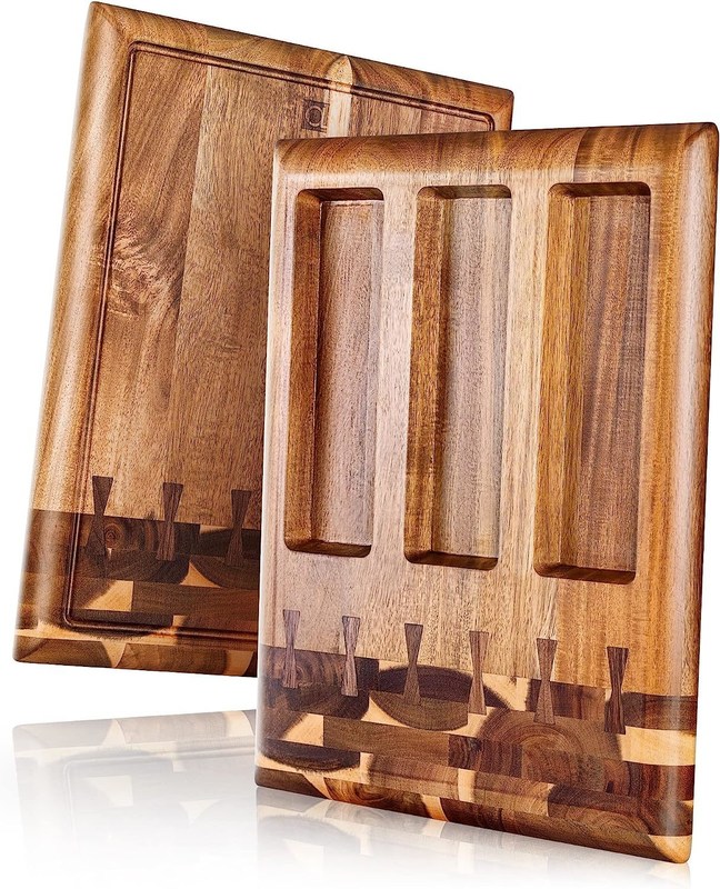 Экологически чистые деревянные доски для резки с встроенной канавкой и съемными контейнерами